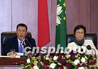 何厚鏵發表施政報告 提出20億元紓民困措施 2001年11月20日 17:35 ![]() 澳門特區行政長官何厚鏵(左),二十日代表特區政府在立法會大樓作二零零二年施政報告。中新社記者 宗金柱 攝