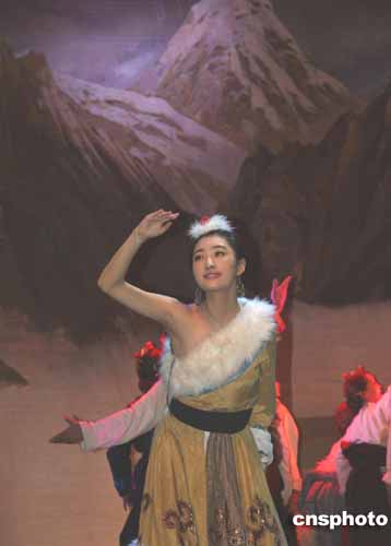 圖為藏族演員曲尼次仁在第一幕演出中。