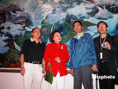 | 美國著名華裔社會活動家、飛虎隊陳納德將軍的夫人陳香梅女士,九月七日參觀了由云南省政協(xié)一批知名人士策劃并創(chuàng)作的大型系列油畫《碧雪千秋》。陳香梅在談到胡錦濤主席在紀念抗戰(zhàn)六十周年大會上的講話,以及陳納德將軍被列入抗日英雄譜時,陳香梅說,我非常高興飛虎隊和陳納德將軍的功績得到了充分的肯定。這說明中美兩國人民是非常友善的,中美兩國是朋友。圖為陳香梅女士在系列作品之一《駝峰飛行》前留影。作者:納家驊