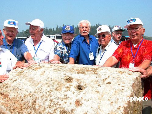 | 九月十日,到中國參加紀(jì)念抗戰(zhàn)勝利六十周年活動(dòng)的二戰(zhàn)美國老兵重回故地,參觀了當(dāng)年奮戰(zhàn)過的地方。六十多年,以陳納德將軍為首的美國“飛虎隊(duì)”即中國空軍美國志愿援華航空隊(duì)在中國英勇抗擊日本侵略軍。位于今日昆明市郊的呈貢機(jī)場,是當(dāng)時(shí)“飛虎隊(duì)”主要的空軍基地之一,機(jī)場南北長三千米,東西寬一千米,當(dāng)年因?yàn)闆]有壓路機(jī),中國民工只能用石碾子壓制飛機(jī)跑道,其中最大的石碾子高一點(diǎn)八米,重五噸。圖為幸存的“飛虎隊(duì)”老兵們手摸石碾子,追憶當(dāng)年的崢嶸歲月。 作者:王超