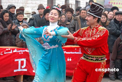 | 1月18日,在吐魯番市恰特喀勒鄉,演員們給農民朋友獻上一臺精彩的文藝節目。新疆吐魯番市科技、文化、衛生“三下鄉”活動在該市七鄉兩鎮巡回開展。活動現場,精心編排的文藝節目令各族群眾拍手叫好、貼近農民需要的科技書籍、資料被農民朋友爭搶一空,現場技術咨詢令農民朋友大開眼界,免費查體、診治令農民們享受了專家服務。“三下鄉”活動就象冬天里的一把火,使暖流涌動在新春佳節前夕的農村大地,受到了各族群眾的歡迎。作者:劉健