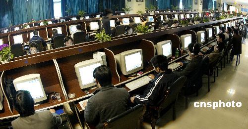 | 2006年2月3日,據(jù)第十七次中國互聯(lián)網(wǎng)絡(luò)發(fā)展?fàn)顩r統(tǒng)計報告,截至2005年底,中國上網(wǎng)用戶總數(shù)為1.11億,全國上網(wǎng)消費總規(guī)模已經(jīng)超過1000億元。中國網(wǎng)民數(shù)和寬帶上網(wǎng)人數(shù)均位居世界第二。目前全球網(wǎng)民約9.7億,平均普及率為15.2%。同時報告也顯示,中國互聯(lián)網(wǎng)發(fā)展在城鄉(xiāng)、東西部之間存在較大的差距。鄉(xiāng)村網(wǎng)民總規(guī)模為1931.4萬人,普及率僅為2.6%,而中國城市網(wǎng)民大約有9168.6萬人,占城市人口的16.9%。圖為一座無虛席的網(wǎng)吧。 作者:張和平