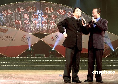 | 2月9日晚8點(diǎn),著名相聲演員姜昆在河南寶豐參加馬街書(shū)會(huì)文藝晚會(huì)演出。河南寶豐縣馬街書(shū)會(huì)源遠(yuǎn)流長(zhǎng),曾被國(guó)家有關(guān)部門(mén)列入“中國(guó)十大民俗之一”,2004年8月被列入“河南省民族民間文化保護(hù)工程”首批試點(diǎn)項(xiàng)目,并申報(bào)國(guó)家民族民間文化遺產(chǎn)保護(hù)名錄。2005年,中國(guó)曲協(xié)以中國(guó)獨(dú)特文化現(xiàn)象為由,向聯(lián)合國(guó)教科文組織推薦申請(qǐng)世界非物質(zhì)文化遺產(chǎn)。作者:王超鋒