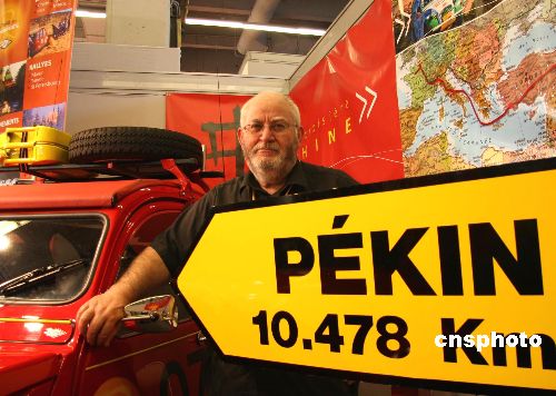 | 2月16日,法國(guó)老爺車協(xié)會(huì)的一位老爺車迷于站在巴黎鮮紅的雪鐵龍車旁,身旁路牌標(biāo)示抵達(dá)“北京10478公里”,身后展臺(tái)巨大的地圖上用紅線標(biāo)出從巴黎到中國(guó)首都北京的往返路線。“法國(guó)2006年老爺車展”刻下正在巴黎舉行,為紀(jì)念1907年北京-巴黎汽車馬拉松賽百年,一個(gè)名為“勇敢者遠(yuǎn)足”的法國(guó)老爺車協(xié)會(huì)在展覽上亮出“2007北京”的旗號(hào),計(jì)劃重走百年前的老路。據(jù)悉將有200多人、100多輛汽車和摩托車參加這次非同尋常的中國(guó)之旅,因往返路線不同,行程會(huì)超過(guò)27000公里。作者:鐘誠(chéng)