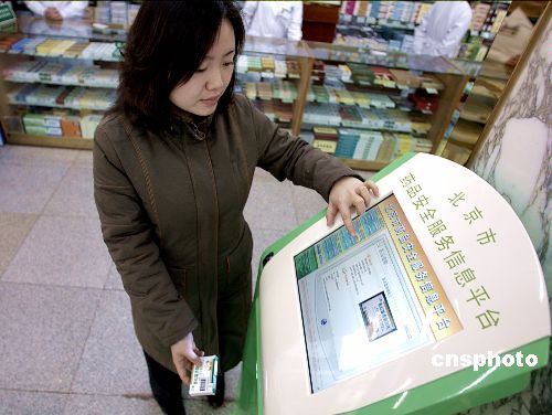 | 3月12日,在北京王府醫藥商店,顧客在使用自助式藥品安全服務信息平臺驗證剛購買的藥品真偽。在這套信息平臺的服務器中存儲了國家食品藥品監督管理局已公布的所有藥品的批準文號、條形識別碼以及與安全用藥密切相關的藥品政策公告。這些信息通過平臺傳至各個終端,消費者在購藥后,只需將藥品名稱、批準文號、條形碼或防偽編碼等其中一項內容輸入終端,信息平臺就會自動驗證該藥品“身份”。公眾還可以通過留言的方式提建議舉報線索等。目前王府井醫藥商店、醫保全新王府井藥店和北京桐君閣大藥房都安裝了這種信息平臺。作者:老羅