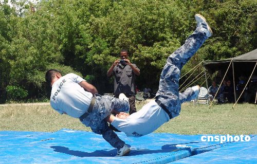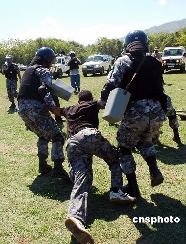 | 4月6日,聯合國海地穩定團(聯海團)進行了防暴演習,在海地維和的6個國家的7支維和警察防暴隊和海地國家特警參加了實戰演習。 在這次演習中,模擬了中國防暴隊保衛的計票中心遭到游行示威的海地各黨派支持者沖擊計票中心時,各個國家防暴隊按照統一部署,快速處置沖擊計票中心的事件和太子港可能出現的騷亂事件。當天中國維和警察防暴隊演練的科目是“計票中心遭到圍攻后的保衛和反擊”戰術,隨著指揮員的一聲令下,中國防暴隊員駕駛車輛迅速趕到演習地點,擺開戰斗隊形,防暴隊以迅速的站位、規范的動作和良好的精神風貌贏得了全場的掌聲。作者:陳進