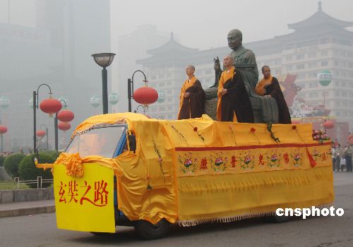 | 10月15日,“玄奘之路”考察隊從西安啟程,重走玄奘當年取經路線。 “玄奘之路”大型文化交流活動,是國家確定的“中印友好年”系列活動之一。由知名專家學者、社會各界人士和媒體記者等組成的40人的“玄奘之路”考察隊,從西安出發,經過陜西、甘肅、新疆由吐爾尕特口岸進入吉爾吉斯斯坦、經過烏茲別克斯坦、阿富汗、巴基斯坦等國,于11月中旬進入印度,11月底結束活動回國。此次考察行程共1.2萬公里,途經6個國家,26個城市,最終抵達新德里。在印度期間,將在那爛陀、菩提迦耶、瓦拉納西、巴特納等6個城市舉辦文化交流活動。 1300多年前,玄奘從古長安出發西行到古印度研習佛經,開拓了兩個文明古國的文化交流。中新社發 李海軍 攝