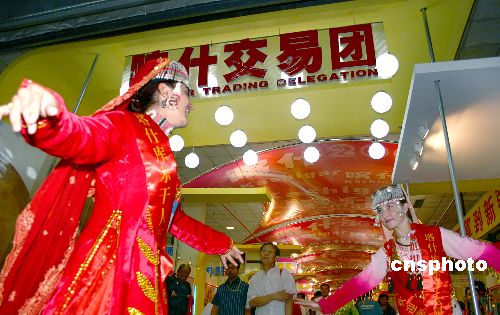 | 九月一日,第十五屆烏魯木齊經濟貿易洽談會在新疆國際博覽中心隆重開幕。上海、天津、北京等省區市及行業協會組織的十六個政府代表團和十四個交易團參會參展。來自俄羅斯、中亞諸國、巴基斯坦、美國、日本、澳大利亞、沙特阿拉伯等二十七個國家和地區的七百多名外商參加了這屆烏洽會。據了解,本屆烏洽會由商品展洽、投資洽談及中西南亞區域經濟合作高層論壇三大部分組成。經過十五年的發展,烏洽會已現成為中國西北地區乃至中亞地區規模最大、影響最為廣泛的綜合性國際經貿盛會。中新社發 劉新 攝