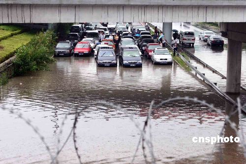 | 7月31日08:50- 11:00,北京首都機場等地區(qū)出現(xiàn)強降雨天氣,降水量達(dá)到85毫米。機場高速路積水嚴(yán)重,最深積水達(dá)1.5米,車輛無法通行。10:40首都機場啟動防汛預(yù)案緊急行車方案,繞行南機坪,避開積水路段,放行社會車輛,同時調(diào)集擺渡車運送旅客至2號航站樓。截止到12:00,首都機場共延誤航班252班,其中進(jìn)港延誤109班,出港延誤143班。取消航班共7班,備降航班共31班。據(jù)氣象部門預(yù)報,今天傍晚前后,機場仍會出現(xiàn)強降雨天氣。首都機場在此提醒廣大旅客,在前往機場之前向所乘坐航班的航空公司確認(rèn)航班信息。中新社發(fā) 陳北 攝