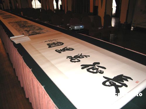 | 八月九日,“神舟六號”成功搭載的“中國飛天第一圖”《長征萬里圖》首次在滬現身。 作為中華民族五千年來第一卷遨游太空的畫卷,《長征萬里圖》的太空之旅歷時一百一十五個小時三十二分,飛行總路程為三百二十五萬公里。該畫由李鐸、沈鵬、劉大為、尼瑪澤仁、苗重安等十八位中國當代著名書畫家,以長征為題材,集體精心構思創作,同時由一百一十一位中國當代書畫家和著名學者及兩名宇航員聶海勝、費俊龍聯合簽名所構成,國畫展開后全長三十二米。中新社發 李佳佳 攝