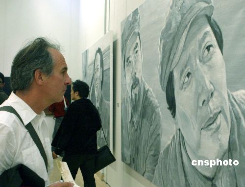 | 10月14日,由魯迅美術(shù)學(xué)院和中國(guó)美術(shù)館共同主辦的《堅(jiān)守與突破--魯迅美術(shù)學(xué)院教師油畫作品展》正式在北京中國(guó)美術(shù)館舉行,魯迅美術(shù)學(xué)院的前身是毛澤東、周恩來(lái)等中國(guó)老一代領(lǐng)導(dǎo)人倡導(dǎo)建立的延安魯迅藝術(shù)學(xué)院,抗戰(zhàn)勝利后遷至東北,1958年更名為魯迅美術(shù)學(xué)院,該院地處北方,受地域文化影響,作品形成了寫實(shí)風(fēng)格的主體,反映現(xiàn)實(shí)生活為創(chuàng)作原作的整體面貌。該院的藝術(shù)家通過(guò)藝術(shù)實(shí)踐和積極探索,表達(dá)了對(duì)當(dāng)代社會(huì)生活的深入體驗(yàn),對(duì)人的生存、尊嚴(yán)、命運(yùn)等的關(guān)注,折射出知識(shí)分子所應(yīng)有的責(zé)任感和獨(dú)立思考的精神。圖為展出作品《歷史劇--長(zhǎng)征》吸引外國(guó)觀賞者。中新社發(fā) 錢興強(qiáng) 攝