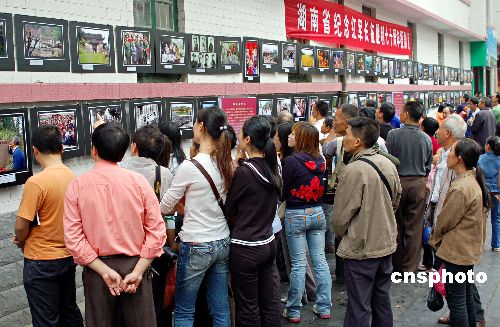 | 10月15—18日,湖南省通道縣文學(xué)藝術(shù)聯(lián)合會和攝影家協(xié)會舉辦“湖南省紀念紅軍長征勝利七十周年攝影展”。該攝影展共分為三大部分,《紅色文化篇》、《輝煌成就篇》、《風(fēng)光風(fēng)情篇》。展覽匯聚了影協(xié)會員的83幅優(yōu)秀攝影作品,以不同角度再現(xiàn)了當(dāng)年紅軍途經(jīng)通道并召開著名的“通道會議”;反映了五十年來,通道在紅軍長征精神鼓舞下,經(jīng)濟建設(shè)取得了巨大成就,特別是改革開放20年,侗鄉(xiāng)發(fā)生了翻天覆地的變化;用藝術(shù)的形式表現(xiàn)了通道美麗的民族風(fēng)情、文物古跡、人文景觀等自然風(fēng)景。中新社發(fā) 楊少權(quán) 攝