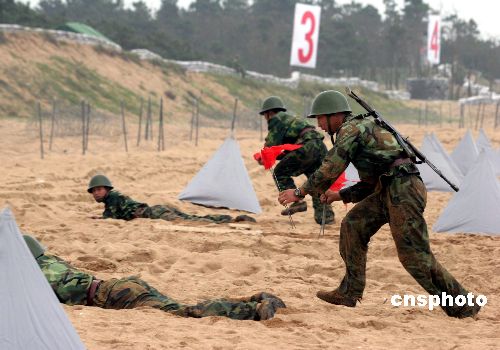| 2006年7月中旬,南京軍區(qū)某部在黃海某海域,按照實(shí)戰(zhàn)要求,組織海上實(shí)兵演習(xí),進(jìn)一步檢驗(yàn)部隊(duì)的實(shí)戰(zhàn)能力。這個(gè)部隊(duì)以可能擔(dān)負(fù)的作戰(zhàn)任務(wù)為牽引,在連續(xù)多年海上訓(xùn)練的基礎(chǔ)上,堅(jiān)持抓基礎(chǔ)與抓應(yīng)用相結(jié)合,單個(gè)技能訓(xùn)練與戰(zhàn)斗編組訓(xùn)練相結(jié)合,把往年的訓(xùn)練成果充分運(yùn)用到訓(xùn)練中去,堅(jiān)持從難從嚴(yán)訓(xùn)練部隊(duì),不斷提高部隊(duì)的實(shí)戰(zhàn)能力。中新社發(fā) 王華勝 攝