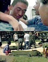 圖文:脫離虎口的中國(guó)人質(zhì)王勝利親述生死瞬間 2001年08月22日 09:25 ![]() 中新網(wǎng)香港8月22日消息:據(jù)香港文匯報(bào)報(bào)道,21日下午兩點(diǎn)過(guò)后,脫離虎口的王勝利在中國(guó)駐菲律賓大使王春貴和武官?gòu)堄窈哟笮5呐阃拢俗逯腥A人民共和國(guó)國(guó)旗的黑色轎車緩緩駛進(jìn)中國(guó)大使館,受到等候已久佟曉玲參贊等使館館員的熱烈歡迎。 踏進(jìn)使館等于回到了自己的家里。在使館休息廳里,菲律賓方面的醫(yī)生為王勝利檢查了身體。除了腳踝在逃跑時(shí)扭傷有些疼痛外,王勝利的身體和精神狀態(tài)都很好。由于飛機(jī)上沒(méi)有提供午餐,使館早已為王勝利準(zhǔn)備好了午餐。經(jīng)過(guò)一個(gè)多星期的驚嚇和磨難后,王勝利終于在使館狼吞虎咽起來(lái)。 王勝利以及張忠義和薛興在當(dāng)?shù)匾幻樟值娜A人陪同下,于八月十二日前去營(yíng)救先前被綁架的張忠強(qiáng)。但善良的他們被不守信用的綁匪扣押。綁匪打一槍換一個(gè)地方,他們每隔二三天搬一個(gè)地方。在變換地方的行軍中,綁匪用手鎗威脅他們老實(shí)一些。但在被綁的其它時(shí)間,綁匪對(duì)中國(guó)人質(zhì)態(tài)度還不錯(cuò),有飯讓王勝利等人先吃,也不打罵他們,盡管領(lǐng)頭的綁匪有時(shí)對(duì)他們耍耍威風(fēng)。 被綁的最初兩天,王勝利等人情緒非常低落,整天愁眉苦臉,唉聲嘆氣。每當(dāng)想起只有九歲的女兒時(shí),王勝利的腿都發(fā)抖。幾天后,他們開(kāi)始接受并面對(duì)殘酷的現(xiàn)實(shí),因?yàn)橄氲迷俣嘁彩遣还苡谩?/p> 十八日上午,他們的駐地突然響起密集的槍聲,綁匪和王勝利等中國(guó)人質(zhì)嚇了一跳。原來(lái)四個(gè)班的政府軍接到線民的舉報(bào)后,前來(lái)圍剿綁匪和營(yíng)救中國(guó)人質(zhì)。政府軍同大約六十多名穆斯林綁匪打了起來(lái)。 中國(guó)人質(zhì)本來(lái)商定好風(fēng)雨同舟,要逃大家一起逃,而且往一個(gè)方向逃。可是突如其來(lái)的槍聲響起后,大家本能地乘機(jī)各奔東西南北。王勝利往山上的樹林里逃,張忠強(qiáng)和薛興往橡膠林里逃。王勝利在國(guó)內(nèi)當(dāng)過(guò)兵,經(jīng)驗(yàn)比較豐富。他逃出一段距離后,馬上一個(gè)魚躍跳進(jìn)路邊的一個(gè)土坑,躲過(guò)了來(lái)往的子彈。在逃跑中,他把腳扭傷了,但幸運(yùn)地被菲律賓軍方救出。 張忠強(qiáng)是于今年六月二十日在菲律賓南部北哥塔巴托省被綁架的。他和薛興逃出很遠(yuǎn)一段距離后,被子彈擊中,當(dāng)場(chǎng)倒在血泊中。由于綁匪熟悉當(dāng)?shù)氐匦危麄儼褟堉覐?qiáng)的弟弟張忠義和姓林的華人作為盾牌邊戰(zhàn)邊逃。張忠義目前下落不明,但是肯定在綁匪手里。綁匪目前要求跟張忠義家屬進(jìn)行談判,并呼吁政府軍減少對(duì)他們的軍事壓力。 穿著T恤衫的王勝利看上去非常消瘦,皮膚曬得黝黑。記者伸手歡迎他回到使館。“你今年多大年紀(jì)?”我問(wèn)王勝利。“三十三歲。”“老家在什么地方?”“浙江。”“你現(xiàn)在最想做的是什么事情?”記者又問(wèn)了這樣一個(gè)問(wèn)題。王勝利除了對(duì)同伴的遇害感到傷心外,直言說(shuō):“回國(guó)看我女兒。我希望能帶她到杭州游玩。”(朱幸福) |