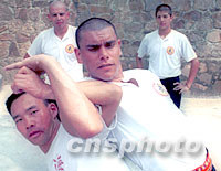 ![]() 來自墨西哥的七名學(xué)員,八月開始在廣東南海黃飛鴻武術(shù)館進(jìn)行為期兩個月的中國武術(shù)訓(xùn)練。近年來,該武館已教授了多批海外弟子。圖為洋徒弟正在向師傅學(xué)習(xí)擒拿術(shù)。中新社圖 梁永強(qiáng) 攝