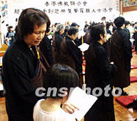 圖文:香港佛聯(lián)舉行法會(huì)超度“九一一”罹難者 2001年09月16日 01:09 ![]() 香港佛教聯(lián)合會(huì)15日下午為美國(guó)「九一一事件」罹難者舉辦的超度法會(huì)上,一對(duì)母子一起誦讀《心經(jīng)》,祈祝世界和平。中新社圖 董會(huì)峰 攝