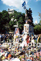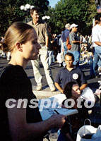 組圖:曼哈頓聯(lián)合廣場成公眾悼念場所 2001年09月22日 13:38 ![]() 曼哈頓下城,離世貿(mào)中心不遠處的聯(lián)合廣場,“九一一”以來成為紐約客悼念死難者的場所。這里遍地是花束、燭臺、國旗和失蹤者的像片,整日人來人往,昔日各種街頭露天表演不復見。中新社記者 郭健 攝 ![]() 自發(fā)悼念“九一一”遇難者是眼下紐約的特殊景觀。這位女畫家正在作現(xiàn)場速寫。中新社記者 郭健 攝