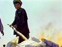 圖:美兵壓境阿富汗內(nèi)戰(zhàn)更趨激烈 2001年09月27日 14:36 ![]() 在美國大兵壓境的背景下,阿富汗北方聯(lián)盟和塔利班之間的內(nèi)戰(zhàn)日前更趨激烈。圖為北方聯(lián)盟士兵在焚燒從塔利班控制地區(qū)內(nèi)搜獲的海洛因,海洛因據(jù)稱是拉登恐怖組織重要的資金來源。 |