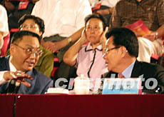 國家政協主席李瑞環八日晚在中國第三屆特殊奧林匹克運動會開幕式上,與全國殘聯主席鄧樸方親切交談。作者:宋吉河