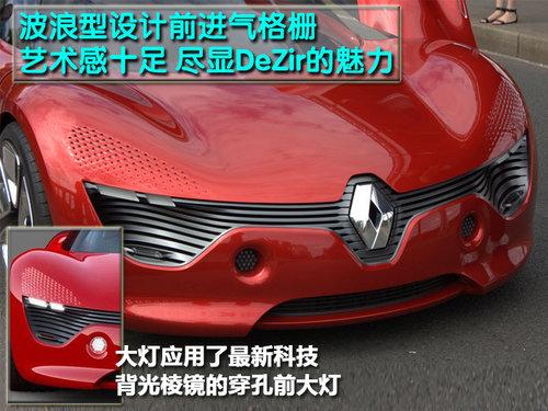 雷諾DeZir的車身尺寸為4225×1968×1163mm,軸距為2582mm。完全可以滿足兩個人的乘坐要求。DeZir前部大燈應用了最新科技,采用了背光棱鏡,并帶入了穿孔大燈的概念,使得這個大燈組起到了一個有層次的圖形功能,在夜間,其給人一種在浮動的感覺。
