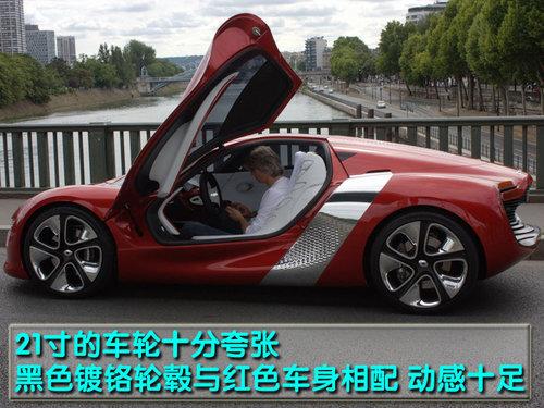從側面看雷諾DeZir最夸張的地方莫過于21寸碩大的車輪,其設計語言代表著一種變化,即通過理想的比例設計給人以感官與靈魂上的刺激,這是一種雷諾式的設計語言。名字中的Z進行大寫,它代表著英文Zero-Emission,即零排放。