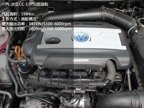 一汽-大眾CC給筆者最大的亮點是其動力系統,它并沒有像高爾夫6 GTI一樣,將邁騰的2.0TSI發動機直接拿來裝上,雖然還是那款EA888發動機,不過大眾還是比較實在的將這款扭矩輸出轉速區間提前100rpm后裝配在了CC之上,并且這款發動機與國外(英國)的帕薩特CC所使用的發動機相同。
