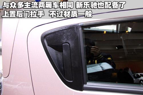 當(dāng)下很多車型都開始采用后門上置拉手設(shè)計(jì),這樣的設(shè)計(jì)不僅造型比較新穎,而且使用起來也十分便利。不過新樂馳的的把手造型和用料都比較一般,如果設(shè)計(jì)成半圓形或其它造型可能會(huì)更符合外觀整體的定位。