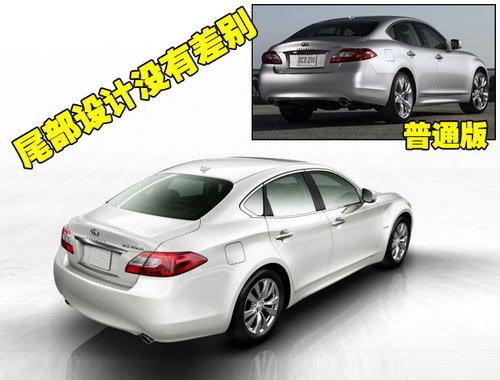 英菲尼迪新款M35混合動(dòng)力版車型的整個(gè)車身線條更加的優(yōu)美,雖定位于商務(wù)轎車,但英菲尼迪的運(yùn)動(dòng)秉性還是被傳承下來(lái),車尾除了在行李廂蓋上增加后擾流片外,后保險(xiǎn)杠下方還有小導(dǎo)流板,拉后的C柱使車廂內(nèi)的前后排空間都很寬裕。