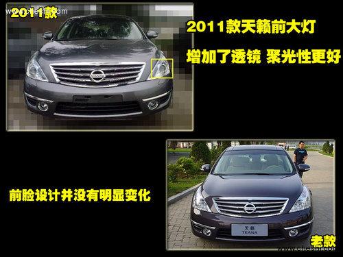 2011款新天籟在外觀方面沒有進行大規模的調整,僅在細節部分作出了修改。在前進氣格柵部分,新款車型的鍍鉻邊框進行了加粗,使前臉顯得更加的犀利。在前大燈部分,這款新車增加透鏡,聚光效果得到提升,外觀更凸顯大氣。