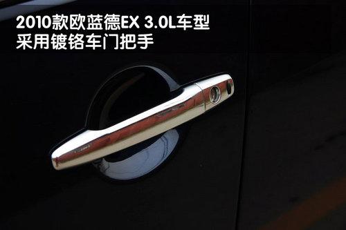 三菱2010款歐藍德EX的車身線條比較流暢,比較符合一款城市型SUV的造型風格。歐藍德EX 3.0L車型除了配備行李架以外,車窗下后沿都采用了鍍鉻裝飾條搭配。另外,這款新車的車門把手和車身兩側護板處,都采用了鍍鉻裝飾,看上去非常時尚。