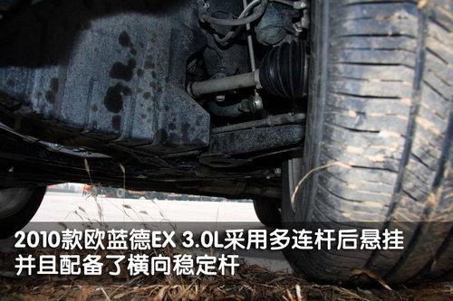 三菱2010款歐藍德EX 3.0L車型與其他排量車型相比,尾部的變化并不明顯,尾燈依然采用了傳統的LED設計,全尺寸備胎采用后部底盤懸掛式配備。但歐藍德EX 3.0L車型尾部采用雙排氣管的設計,畢竟排量大了。歐藍德EX 3.0L車型采用多連桿獨立后懸掛,配備了橫向穩定桿,可以更好的提高操控性。