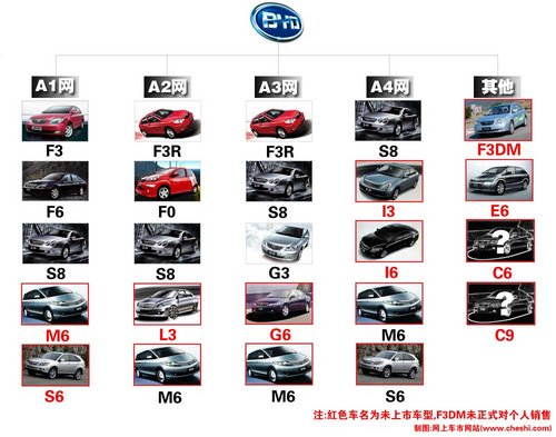 從上面的比亞迪詳細新車規劃中可以看出,比亞迪未來不僅有A1、A2、A3銷售網絡,還將有A4網絡,而新能源車放在哪個網絡暫時還不得而知。在四張網絡下,將推出M6、L3、I6、I3、E6、S6、G6、C6、C9等全新車型,而F3DM雖然已經公布售價,但還未對個人銷售,因此也算在比亞迪的規劃新車中。這其中M6、G6、S6預計將在明年上市,分別為MPV、B級轎車、SUV車型。