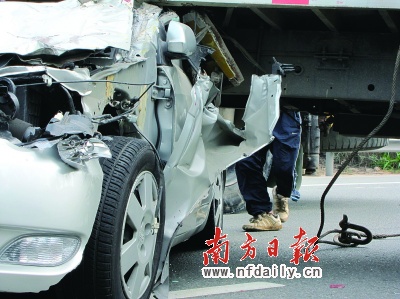 比亞迪轎車(chē)上的林先生告訴記者,他們是廣東湛江人,昨天他帶著女朋友和親戚乘坐侄子的小車(chē)回老家準(zhǔn)備結(jié)婚。沒(méi)想到侄子脾氣不太好,看到貨車(chē)司機(jī)在前邊的快車(chē)道上不急不慢地行駛,一時(shí)急于超車(chē),結(jié)果不小心發(fā)生了撞車(chē),侄子的眉骨被撞裂,傷勢(shì)稍微嚴(yán)重一些,其他人則是不同程度的輕傷。