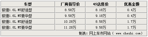中華駿捷一直是華晨汽車的主力車型,憑借大氣的外形和較高的性價比優(yōu)勢,擁有不錯的市場占有率。據(jù)網(wǎng)上車市網(wǎng)站了解,近期各家經(jīng)銷商處駿捷1.8L車型可優(yōu)惠1.7萬元,而1.6L車型也給出了4000元的降幅。具體詳情如下: