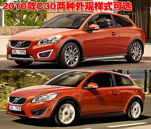 2010款C30有兩種外觀可以選擇,自前之后的黑色裝飾應該是低配版本,而加入了銀色裝飾條版本,顯得整體設計更加的精致,當然看起來也是動感十足,如果再引入R-design版本的話,相信能吸引不少年輕消費者。