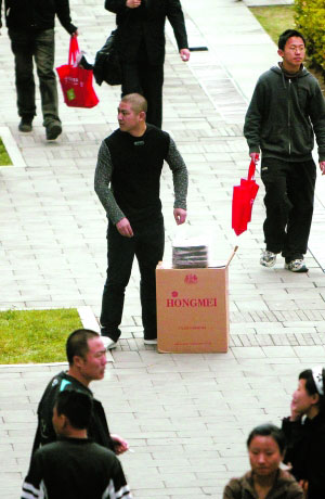記者26日下午在這里看到,一個男人坐在通道里,手拿計算器,1個多小時內陸續有近30人出入,大家把錢交到男子手中,隨后分批離開。一個操著東北口音的男子說:“我是來幫忙賣盒飯的,中間拿提成。”