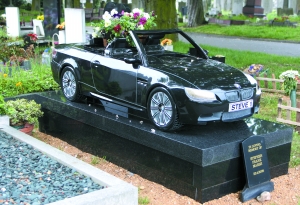 英國車迷史蒂夫·馬什去年去世。為表現他生前對汽車的熱愛,馬什的家人為他訂做一個“寶馬”車造型的墓碑。