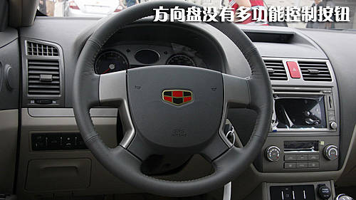 帝豪EC718-RV的方向盤采用皮革包裹,看上去顯得更有檔次,但這款車的方向盤上并沒有設計多功能控制按鈕,這一點比較可惜。方向盤左右兩側依然是傳統的大燈、轉向燈、雨刷器的控制桿。