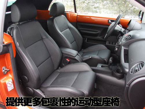 與普通版甲殼蟲(chóng)相比此次推出的“黑橘”版在售價(jià)不變的基礎(chǔ)上增加了很多配置,同時(shí)車輛的一些參數(shù)也進(jìn)行了改變。例如,車身高度降低了10mm并且選用了17寸的Sarasat的輪轂,這款輪轂可以選擇銀色或是黑色,以增添整車的動(dòng)感。內(nèi)飾方面為了迎合運(yùn)動(dòng)化的改變首先將座椅換成了包裹性更佳的運(yùn)動(dòng)型座椅。車窗玻璃也是淡綠色的可吸收光線玻璃。