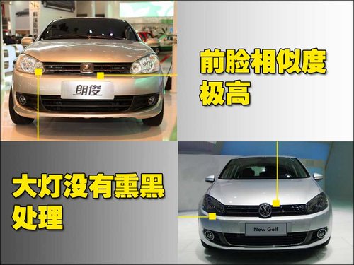 朗字系列作為眾泰車系的高端車系,是眾泰首度切入家轎市場的產(chǎn)品。“朗”系列全部源自于菲亞特,其中有兩款曾經(jīng)在南京菲亞特國產(chǎn),“朗俊”的三廂車,源自菲亞特的西耶那,“朗杰”兩廂車,原型系菲亞特派力奧。從上圖的對比不難看出,朗俊前臉造型與大眾高爾夫6相比除了大燈沒有做熏黑處理之外,其他方面差別非常小。