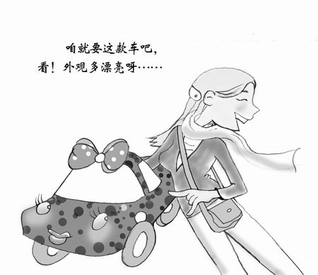 “大多數女性購車者購車僅憑著自己的第一印象,對車子外形要求往往特別挑剔,第一眼相不中的車型,無論性能如何好、別人如何推薦,一般都不再考慮,因此,一些外形特別引人注目的車型往往比較討巧。”北京現代某4S店銷售人員告訴記者,女性購車與男性明顯的不同就是過于感性!巴庥^是女性買車時最關注的問題。女性顧客選車時,在一定價位內的車型中,往往先看對外形和顏色是否滿意,然后再了解車的其他性能!