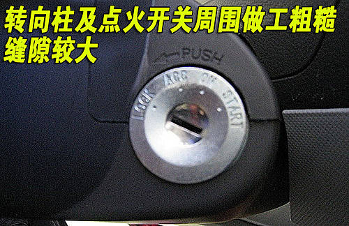 天津一汽威姿V1采用了傳統的點火方式,不過通過圖片我們可以非常明顯的看到,鑰匙孔周圍的縫隙較大,其做工還有提升的空間。