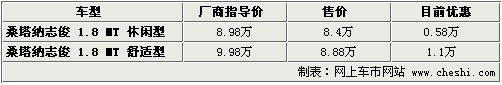 據4S店銷售人員介紹:目前志俊現車少,只有1.8升手動休閑型有現車,其余車型都需要預訂,1.8升舒適型目前預定需等待1周時間,顏色只有黑色。據經銷商介紹,2.0升車型一直以來沒有現車,訂單也極少,所以只有兩款1.8升車型在售。價格方面,休閑型優惠5800元,舒適型可優惠1.1萬元。