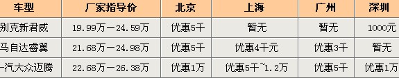 競爭車型:別克新君威、馬自達睿翼和一汽大眾邁騰