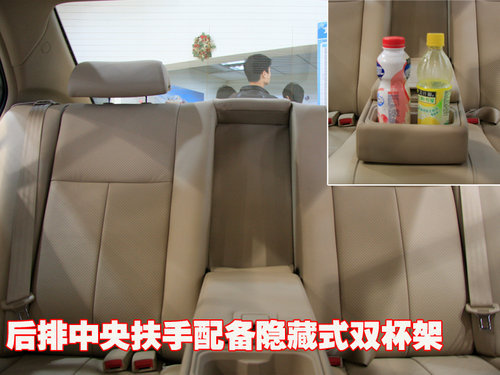 在舒適的后排座椅中,隱藏著后排中央扶手。其中可以放置兩瓶飲料,也可當作扶手以緩解疲勞。