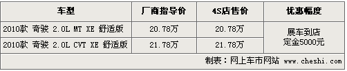 東風日產(chǎn)2010款奇駿正式上市后,目前已經(jīng)全面接受消費者預(yù)訂,訂金為2千元-5千元不等,部分4S店2010款展車已經(jīng)到店,消費者可以到店賞車看車。現(xiàn)車預(yù)計11月份會陸續(xù)到店,目前有關(guān)新車方面的優(yōu)惠活動暫時沒有推出。
