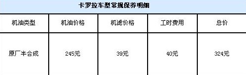 同樣,這臺(tái)發(fā)動(dòng)機(jī)在國(guó)內(nèi)服役時(shí)間也比較長(zhǎng)了,因此保養(yǎng)費(fèi)用也不會(huì)太高。通過(guò)調(diào)查,卡羅拉每5000公里進(jìn)行一次機(jī)油保養(yǎng)的284元,同時(shí)卡羅拉享受一次免費(fèi)的機(jī)油機(jī)濾的保養(yǎng)費(fèi)用為324元。