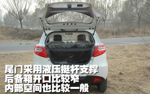 丘比特的尾門可以直接開啟,并且采用液壓挺桿支撐,后備箱的開口寬度比較窄,而且內部空間也比較一般。不過如果后排座椅放倒或者折疊以后,整體的容積還是不錯的。