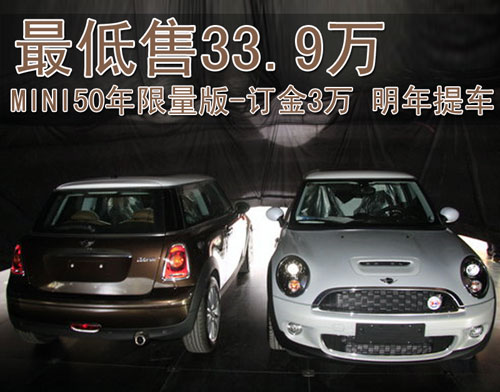 據(jù)北京經(jīng)銷店銷售人員介紹,MINI50周年分為Mayfair和Camden兩款車型,售價(jià)分別我餓哦33.9萬元和37.9萬元。目前店內(nèi)已經(jīng)可以接受MINI50周年紀(jì)念版車型的預(yù)訂,訂金為3萬元,最早一批現(xiàn)車將會在明年的2月份交到消費(fèi)者的手里。
