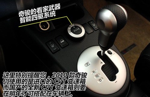 相比逍客,2010款奇駿的變化更實用一些,特別是增加了一款配置最高的2.5L四驅至尊版車型,廠家指導價為26.98萬元,外觀上和其他車型的區別就是增加前后的越野包圍,而在配置上則有DVD導航、側面攝像頭等。